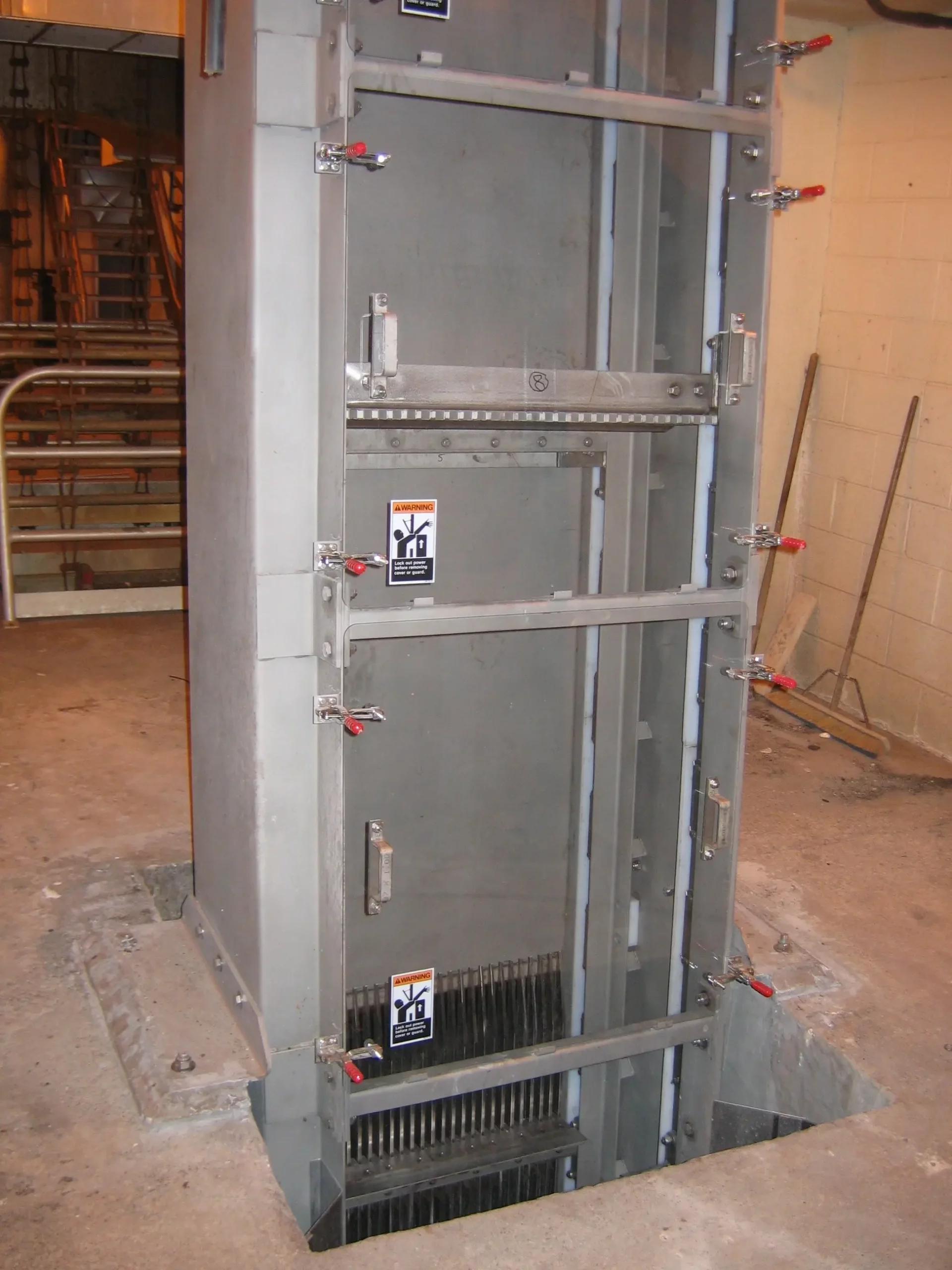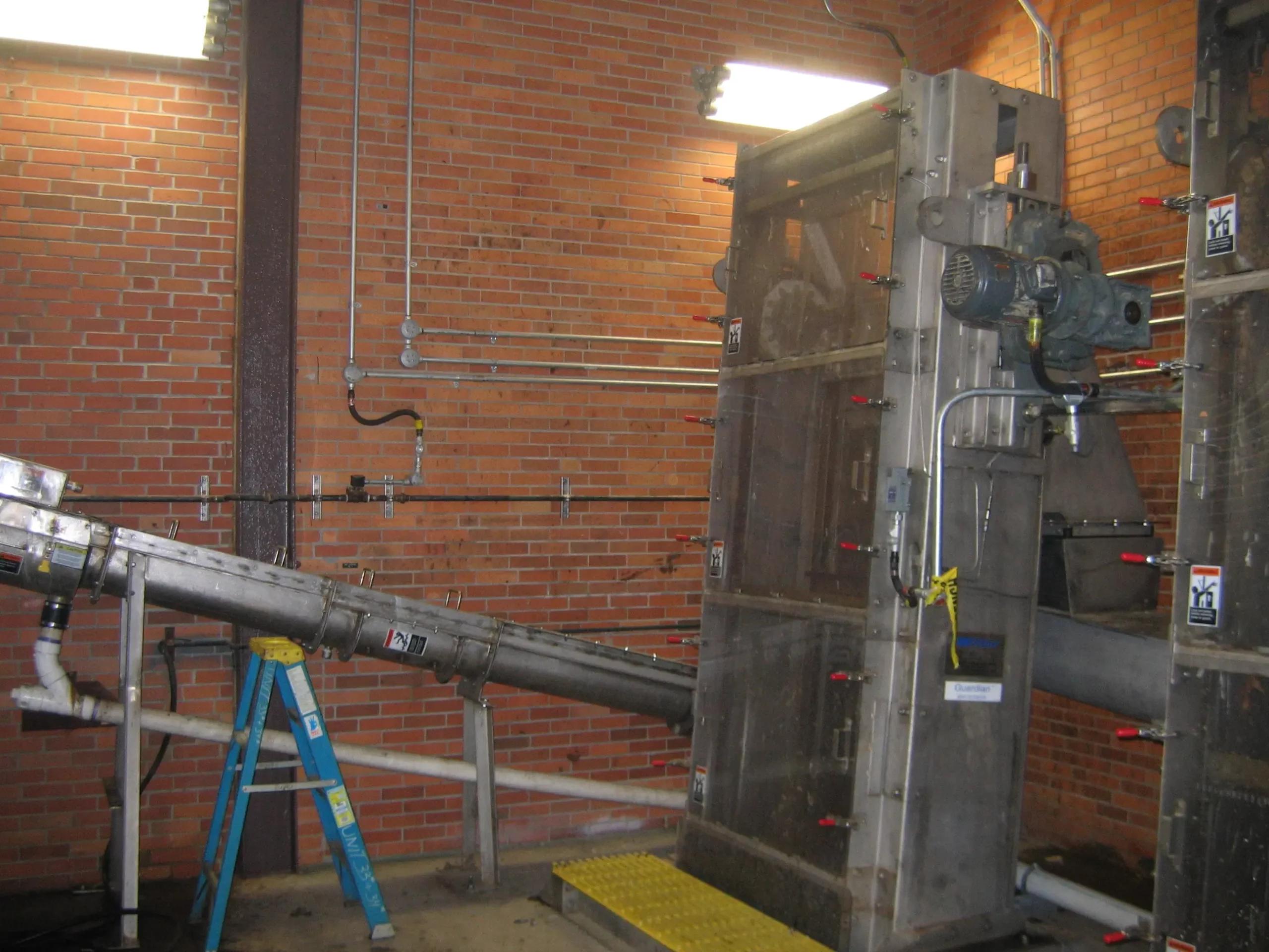 As influent flow passes through the stainless-steel bar rack assembly, debris is captured and elevated to the discharge point by rotating chains with multiple cleaning rakes. Discharged debris can be captured in screening bins, belt-conveyors, screw compactors or screw transfer conveyors.